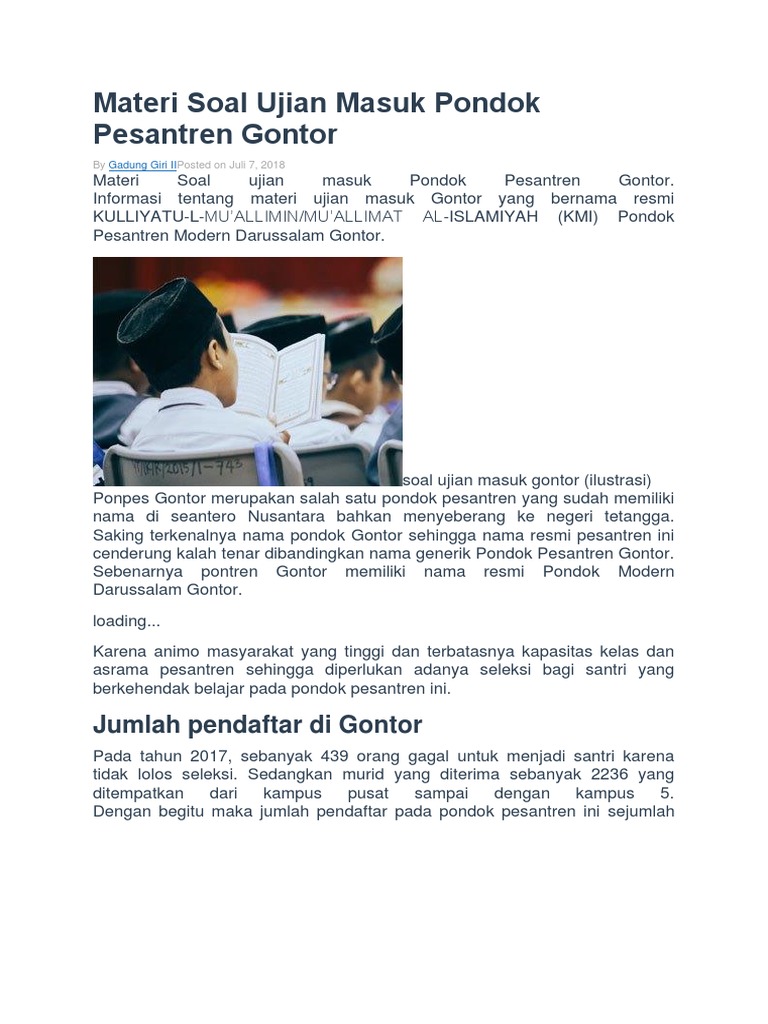Materi Soal Ujian Masuk Pondok Pesantren Gontor Pontren Com