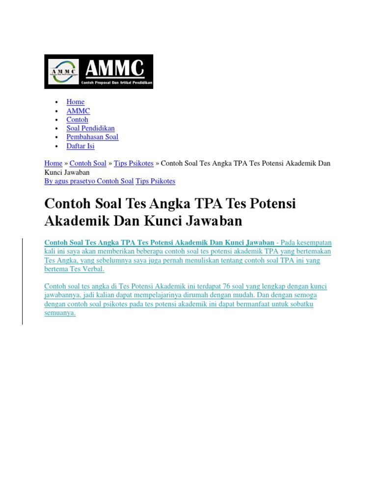 Contoh soal tes potensi akademik dan jawabannya. Contoh soal tes potensi akademik tpa terbaru dan pembahasan meski sedikit sibuk update ini saya sempatkan untuk membahas mengenai soal tes potensi akademik tpa yang banyak dibutuhkanpada update ini akan dibahas contoh terbaru yang disertai dengan pembahasan atau jawaban dari soal tpa silahkan simak selengkapnya berikut. Sobat bisa mencoba menjawab terlebih dahulu soal tersebut baru mencocokkan dengan jawaban dari kami. Contoh soal tpa terbaru dan terlengkap yang disertai dengan trik jitu untuk menjawab dengan tepat dan benar. Contoh soal tes potensi akademik tpa terbaru. Contoh soal psikotes bank dan jawabannya. Contoh soal tpa tes penalaran logis silogisme.