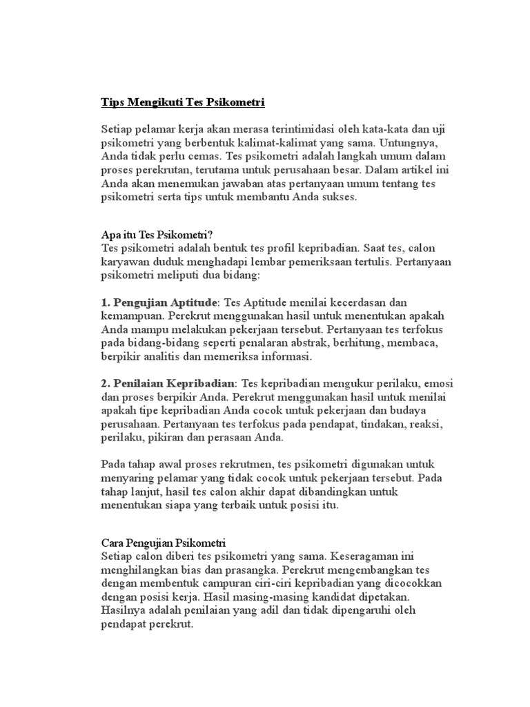 Immer manalu 05012018 13042020. Download contoh soal tes psikometri online offline gratis banyak yang bertanya tanya mengenai tes psikometri termasuk juga tips dan trik menghadapinyajika anda belum mengenal tes psikometri dan memahami perbedaan antara tes psikometri dengan psikotes anda bisa membaca terlebih dahulu artikel sebelumnya yaitu tes psikometri online offline. Latihan tes psikometri online contoh soal psikometri. Seperti yang sudah disampaikan di awal bahwa anda bisa mencoba untuk menggunakan contoh soal tes psikometri gratis yang saya bagikan pada kesempatan kali ini. 70 contoh soal tes psikotes lengkap contoh soal psikotes tes psikotes biasanya sering kita temui saat mengikuti ujian masuk ke sebuah instansi atau perusahaan. Bahkan contoh soal psikotes dan kunci jawaban tidak hanya dipakai pada ujian seleksi masuk perusahaan namun sudah dipakai pada seleksi tes masuk perguruan tinggi negeri s1 s2 dan s3 tes penerimaan cpns dan bumn tes kenaikan jabatan tes rekrutmen karyawan swasta dan tes rekrutmen perusahaan asing.
