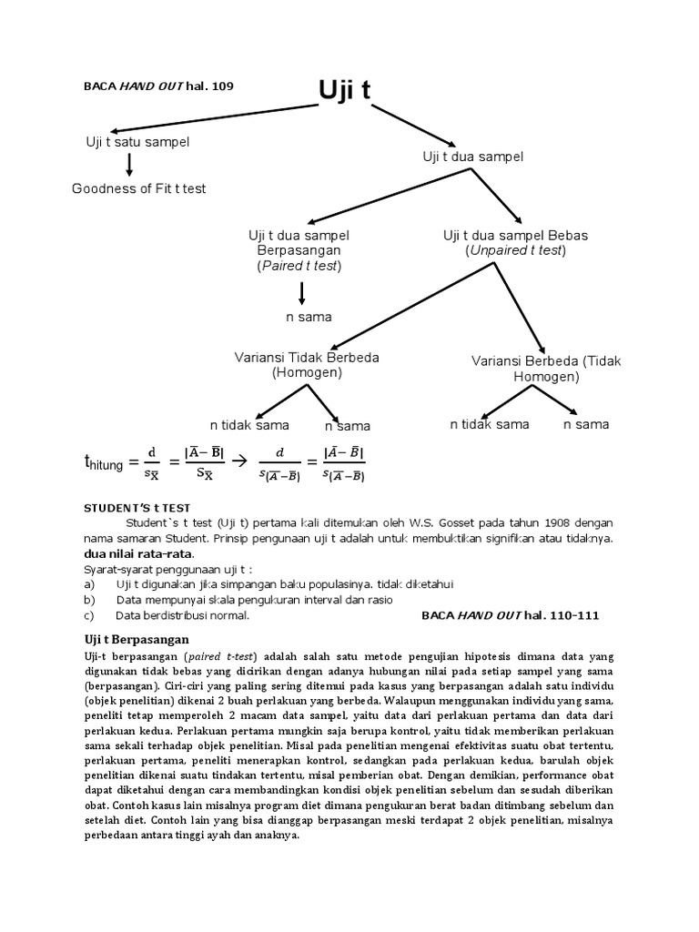 Pada tabel t nilai kritis dalam uji statistik satu sisi adalah. Uji t untuk satu sampel dalam istilah lain biasanya disebut dengan one sample t test method merupakan prosedur uji t untuk sampel tunggal jika rata rata suatu variabel tunggal dibandingkan dengan suatu nilai konstanta tertentuuji t dipakai jika jumlah data sampel di bawah 30. Sebelum melakukan uji hipotesis kesamaan rata rata 2 populasi dengan uji t 2 sampel independen ada pertanyaan yang perlu dijawab yaitu apakah ragam. Uji independent sample t test adalah salah satu cara untuk mengetahui apakah dua kelompok sampel memiliki perbedaan rata rata secara signifikan atau tidak ada banyak cara untuk melaksankan uji t tersebut bisa dengan menggunakan software olah data statitstik semisala spss minitab dengan perhitungang menggunakan micorosoft excel maupun bisa dengan perhitungan manual. Berdasarkan hubungan antar populasinya uji t dapat digolongkan kedalam dua jenis uji yaitu dependent sample t test dan independent sample t test. Uji t satu sampel dan dua sampel uji t atau test t adalah salah satu test statistik yang dipergunakan untukmenguji kebenaran atau kepalsuan hipotesis nihil yang menyatakan bahwa diantara dua buah mean sampel yang diambil secara random dari populasi yang sama tidak terdapat perbedaan yang signifikansudjiono 2010278.