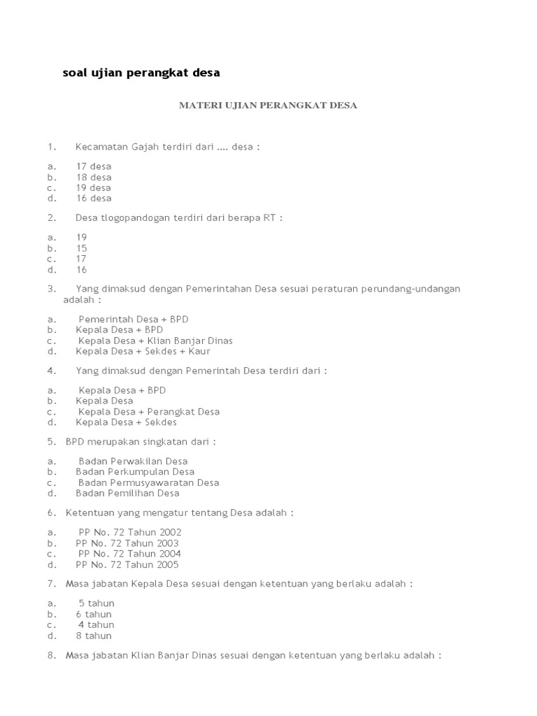 Tes ujian perangkat desa 2018. Contoh soal ujian perangkat desa. Terutama masalah penjaringan perangkat desa yang kini banyak terjadi didaerah. Berikut ini adalah contoh. Download soal tes perangkat desa download. Admin blog contoh soal terbaru 2019 juga mengumpulkan gambar gambar lainnya terkait contoh soal ujian perangkat desa ebook download dibawah ini.