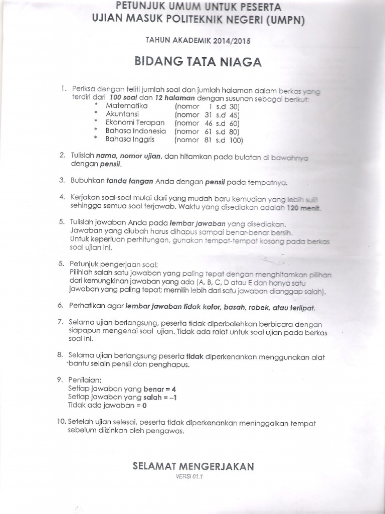 Download soal soal utul ugm. Download soal usm stis. Adapun materi ujian umpn pnj politeknik negeri jakarta sama dengan politeknik negeri lainnya yaitu 1 bidang teknik rekayasa meluputi matematika fisika bahasa indonesia dan bahasa inggris. Untuk soal dan pembahasan umpn 2015 2016 2017 dan 2018 sudah saya rapikan menjadi satu buku dengan ukuran a4. 2 bidang tata niaga meliputi matematika akuntansi ekonomi bahasa indonesia dan bahasa inggris. Soal umpn tahun 2019 bidang rekayasa.