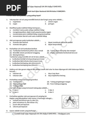 Ada bank latihan soal kumpulan contoh soal un ipa smp dan pembahasannya kunci jawaban try out kelas 9 yuk download pdf nya. Contoh soal un ipa smpmts 20192020 lengkap dengan kunci jawaban. Mudah mudahan bisa digunakan untuk sekedar memberikan persiapan berlatih mempelajari soal un unbk ipa smp ala games. Supaya bisa mengasah kemampuan kamu dalam bidang ipa berikut adalah 10 contoh latihan soal untuk ujian nasional beserta pembahasannya. Sebagaimana diketahui berdasarkan undang undang republik indonesia nomor 20 tahun 2003 dinyatakan bahwa dalam rangka pengendalian mutu pendidikan secara nasional dilakukan evaluasi yang tidak lain ialah sebagai bentuk akuntabilitas penyelenggara pendidikan kepada pihak pihak yang berkepentingan.