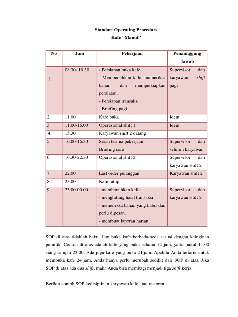 Contoh sop restoran lengkap. Selain itu agar lebih jelas dan mudah untuk dipahami kita juga akan memberikan contoh sop yang mudah untuk kalian pahami. Karena standard operating procedures ga atau general affairs tidak ada di bangku kuliah dan juga tidak ada di buku buku. Biar lebih jelasnya dalam artikel ini kita akan coba mengulas tentang pengertian sop tujuan sop manfaat sop dan cara membuat sop yang baik dan benar itu seperti apa. Paket sop resto modern contoh sop perusahaan bisnis autopilot usaha autopilot contoh sop perusahaan jasa contoh sop administrasi contoh format sop coach di bali business coach contoh proposal usaha proposal bisnis business plan proposal kredit standard operating procedure contoh sop keuangan contoh sop accounting contoh sop restoran standar operasional prosedur sop perusahaan. Oleh karenanya kami menghadirkan selusi terbaikyakni menghadirkan sebuah sop restoran sebagai aturan baku dalam menjalankan aktivitas. Tentang contoh sop resto atau rumah makan modern bisa didapatkan di klik contoh sop resto.