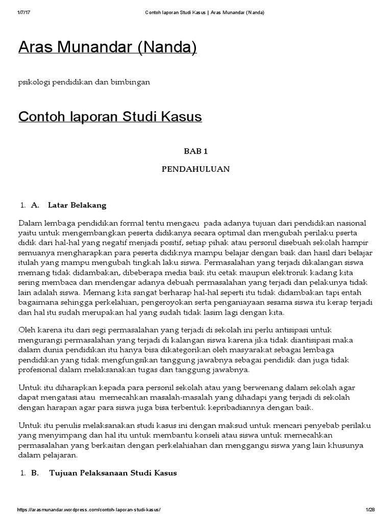 Untuk itu penulis melaksanakan studi kasus ini dengan maksud untuk mencari penyebab perilaku yang menyimpang dan hal itu untuk membantu konseli atau siswa untuk. Riset studi kasus ini dijalankan dalam berbagai bidang misalnya dalam kewirasuahaan pendidikan perusahaan sosial budaya ataupun dalam proses pemberdayaan. Sering mengajukan pertanyaan tentang hal hal yang diajarkan di sekolah pada anak bukan dalam keadaan mengetes anak tapi misalnya. Bahasan ini sendiri mencangkup tentang fenomena sosial dan gejala sosial dalam masyarakat seperti dalam pendidikan bimbingan konseling bk perusahaan komunikasi dan lain sebagainya. Academiaedu is a platform for academics to share research papers.