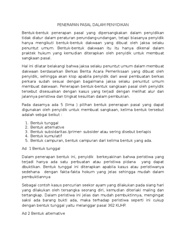 Contoh surat dakwaan komulatif dalam berbagai jumlah tindak pidana sebagai referensi membuat surat dakwaan yang baik dan benar. 28 tahun 28 januari 1984. Dalam surat dakwaan ini terdapat beberapa dakwaan yang disusun secara berlapis lapisan yang satu merupakan alternatif dan bersifat mengecualikan dakwaan pada lapisan lainnya. Pengertian kumulatif terbuka adalah sifat uu yang bisa kapan saja dibahas atau dapat diajukan sewaktu waktu tanpa harus melalui proses prolegnas program legislasi nasional terlebih dahulu. Contoh contoh surat dakwaan docx.