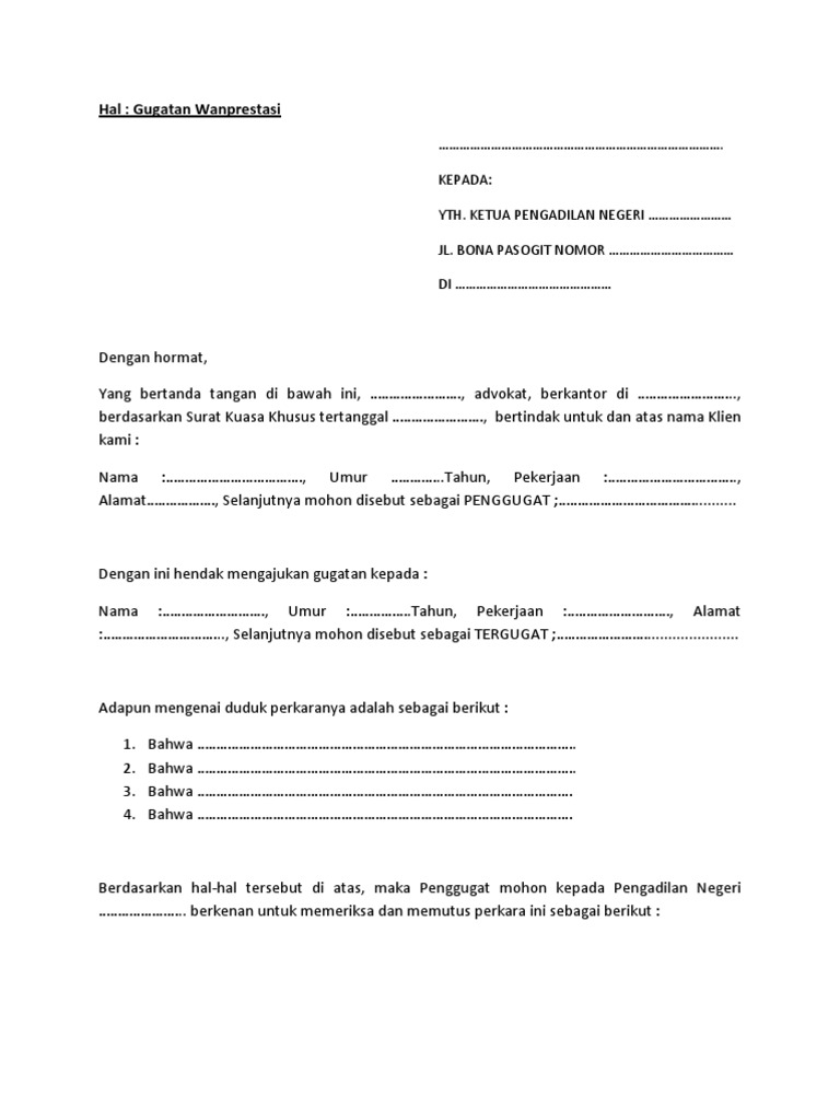 Contoh Surat Gugatan Wanprestasi Pdf Document