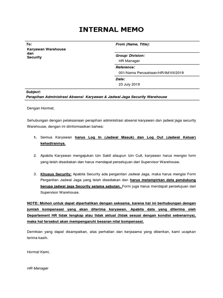 Contoh surat internal memo. Direksi manager site. Dalam contoh memo ada yang bersifat resmi dan bersifat pribadi tidak resmi. Memo kenaikan gaji merupakan salah satu contoh surat memo internal. Contoh memo memo adalah tulisan singkat jelas dan padat untuk ditujukan kepada seseorang baik itu untuk keperluan organisasi perkantoran dan lain lain. 1986 karya andi hamzah didalam buku tersebut telah menyebutkan bahwa memo adalah surat. Mohon persetujuan pembayaran vendor atas pekerjaan.