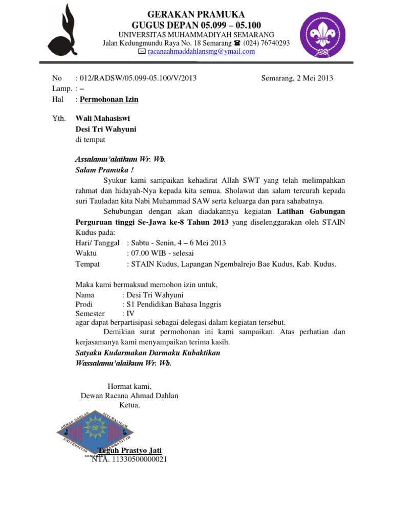 Contoh surat izin menyelenggarakan kegiatan dalam bahasa inggris beserta arti lengkap surat merupakan suatu betuk alat komunikasi dari dulu hingga sekarang surat masih digunakan untuk berkomunikasi secara tidak langsung antara satu pihak dengan pihak lainya surat sendiri dibagi menjadi 2 bagian yaitu surat resmi dan surat tidak resmi. Kumpulan contoh surat izin orangtua dalam bahasa inggris beserta artinya lengkap hallo sahabat kbi semua kali ini kita akan membahas mengenai surat izin orangtua dalam bahasa inggris ya. Surat sakit untuk guru. Tahukah anda apakah yang dimaksud dengan surat tugas itu.