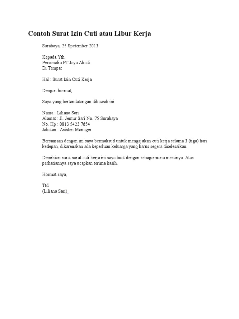 Contoh Lengkap Surat Izin Cuti Kerja Atau Libur Kerja Muda