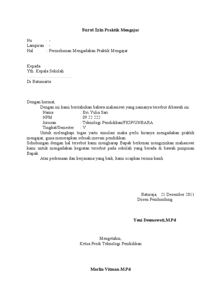Menurut pengalaman dan sepengatahuan saya surat yang dibuat oleh siswa adalah surat ditulis berlaku untuk seluruh guru mata pelajaran yang tujan surat di wakilkan oleh wali kelas namun surat izin tidak kuliah tujuan surat dikhususkan pada dosen pembimbing mata kuliah saja jika banyak mata. Contoh surat lamaran kerja dosen menjadi penting untuk anda simak jika anda berencana untuk melamar pekerjaan menjadi seorang dosen di perguruan tinggi. Karena surat ini dapat berfungsi sebagai izin resmi kepada dosen yang bersangkutan untuk tidak mengikuti perkuliahan. Jangan menganggap enteng masalah absensi pada saat kuliah ya karena salah satu hal yang bikin mahasiswa lulusnya lama adalah karena harus mengulang ulang mata kuliah gara gara absensi. Nah setelah membaca artikel ini sampai selesai maka kamu bisa membuat surat izin kamu sendiri secara umum fungsi dari surat izin adalah sebagai sarana pemberitahuan dan perizinan. Saya syamsurijal mahasiswa semester iv kelas f hari ini belum bisa mengikuti perkuliahan yang bapak bawakan karena sakit atas apresiasinya saya mengucapkan terima kasih yang sebesar besarnya.