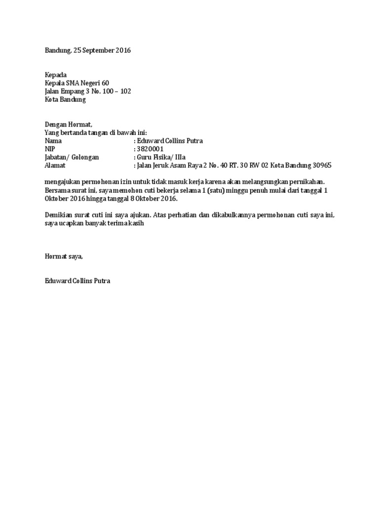 Contoh Surat Cuti Menikah