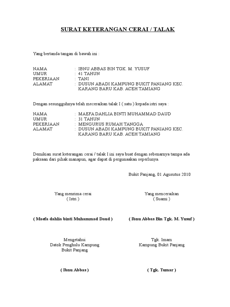 Di bawah ini terdapat contoh surat keterangan cerai dari kelurahan yang bisa dipelajari sehingga bisa memudahkan kamu dalam membuatnya. Pegawai negara swasta juga merupakan seorang manusia biasa yang bisa saja melalui kepahitan kepahitan dalam hidup seperti perceraian. Setelah mempelajari bagaimana pengajuan perceraian dan juga mengenai surat cerai di bawah ini anda akan melihat beberapa contoh mengenai akta perceraian surat cerai dari berbagai pihak surat pernyataan dan keterangan cerai contoh surat gugatan cerai juga tentang surat permohonan izin cerai karena merupakan pegawai negeri sipil atau pns. Saksi saksi mencantumkan beberapa orang saksi dalam proses perceraian. Cara penulisan dan contoh surat pribadi untuk sahabat teman. Instansi pembuat identitas pribadi tentunya tidak menerbitkan suatu identitas tanpa adanya surat pengantar dari kelurahan.