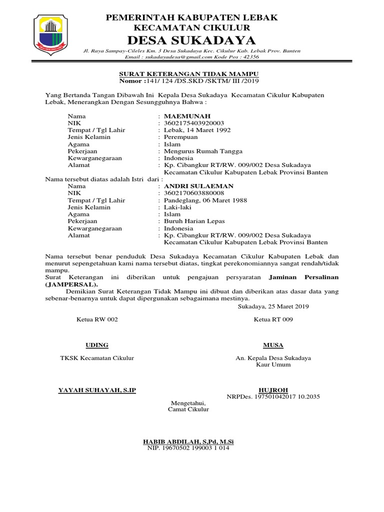 Contoh surat keterangan tidak mampu dari desa. Surat keterangan tidak mampu ialah sebuah surat yang dibuat dan dikeluarkan dari pihak yang berwenang ketua rt ketua rw kepala dusun kelurahan kepala desa sekolah dan lainnya untuk dapat menerangkan bahwa warganya yang telah disebutkan dalam surat tersebut merupakan salah satu warga yang tidak mampu yang berdomisili di daerah tertentu. Surat keterangan sudah menikah ini merupakan salah satu dokumen yang wajib untuk anda miliki sebagai bukti tambahan bahwa anda telah menikah selain adanya buku. Contoh surat keterangan tidak mampu bagi siswa yang tidak mendapatkan kpspip hanya diperuntukan bagi siswa yang benar benar tidak mampu. Sleman 25 desember 2018 ketua rt 006. Surat keterangan tidak mampu adalah sebuah surat yang mana dibuat dan dikeluarkan oleh pihak yang berwenang ketua rt ketua rw kepala dusun kepada desa dan lainnya untuk dapat menerangkan bahwa seseorang yang telah disebutkan dalam surat tersebut merupakan salah atu warga yang tidak mampu yang berdomisili di daerah tertentu. Contoh surat keterangan sudah menikah.