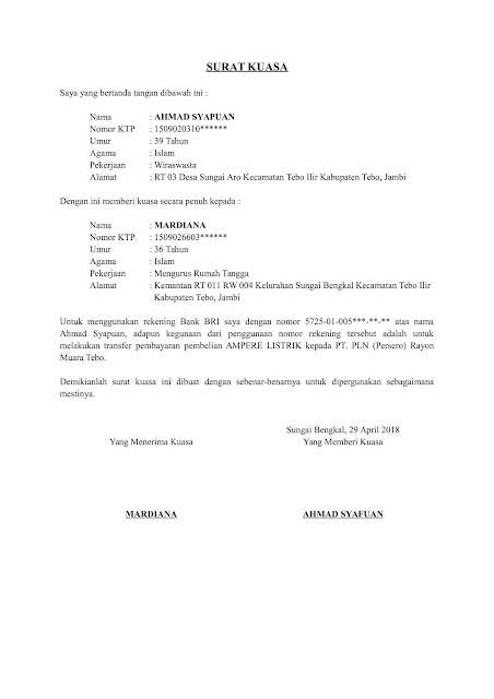 Terkadang saking sibuknya anda hingga anda pun tidak sempat untuk datang ke bank. Contoh surat kuasa penggunaan nomor rekening bank untuk pembayaran pemasangan ampere listrik pln word doc sebagai seorang tukang ketik bayaran seperti saya ini sepertinya selalu saja ada hal baru yang ditemukan dimana setiap hari ada saja hal baru yang saya ketik dan bertemu dengan orang baru yang membutuhkan jasa saya.