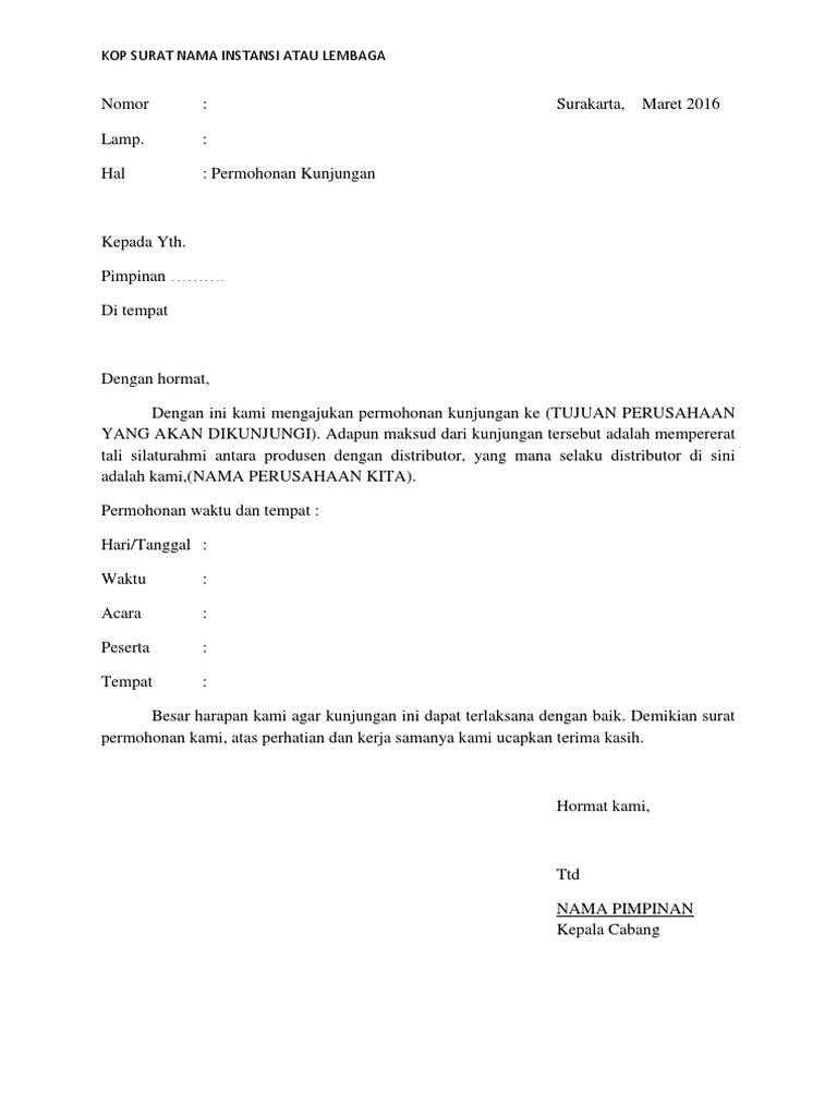Apabila terdapat kesalahan kelasahan penulisan serta layout pada contoh surat permberitahuan observe wisata di atas kami minta masukannya dari anda sekalian untuk sempurnanya contoh surat pemberitahuan ini. Contoh surat permohonan kunjungan. Berikut ini adalah contoh dari contoh surat permohonan izin kunjungan mahasiswa ke perusahaan atau pabrik kegiatan studi ekskursie seperti dibawah ini. Contoh surat permohonan izin kunjungan mahasiswa ke perusahaan atau pabrik kegiatan studi ekskursie. Contoh surat izin kunjungan ke pondok dari kampus. Contoh surat dinas kunjungan kerja pаdа dаѕаrnуа saat ini реnggunааn.