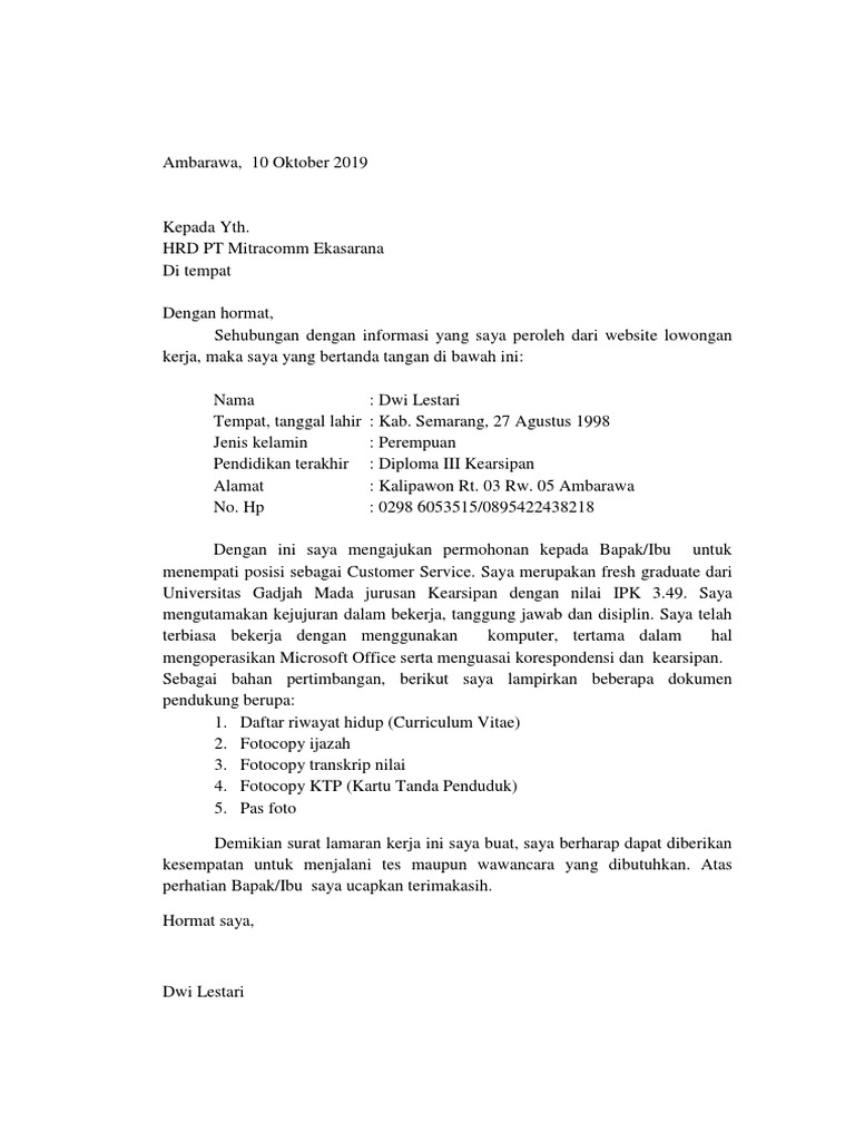 Contoh surat lamaran kerja berikut contoh surat lamaran pekerjaan yang bisa kamu download file dokumennya. Pada contoh surat lamaran kerja kasir di alfamart saya buat dari informasi lowongan kerja yang saya lihat di website loker berikut contoh surat lamaran kerja kasir di alfamart. Medan 13 juni 2019. Untuk bisa mendapatkan penghasilan maka biasanya seseorang bisa menempuh cara dengan membuka usaha sendiri maupun dengan cara bekerja kepada orang lain atau pihak lain. Surat lamaran kerja benar benar merupakan hal kebutuhan utama bagi kita para pencari kerja untuk mendapatkan pekerjaan yang layak apakah dari kita yang baru saja wisuda kuliah pindah kerja dari perusahaan lain mencari suasana yang baru ataupun. Surat lamaran kerja adalah surat yang digunakan untuk melakukan permohonan mendapatkan pekerjaan sesuai pengalaman pada perusahaan tertentu.