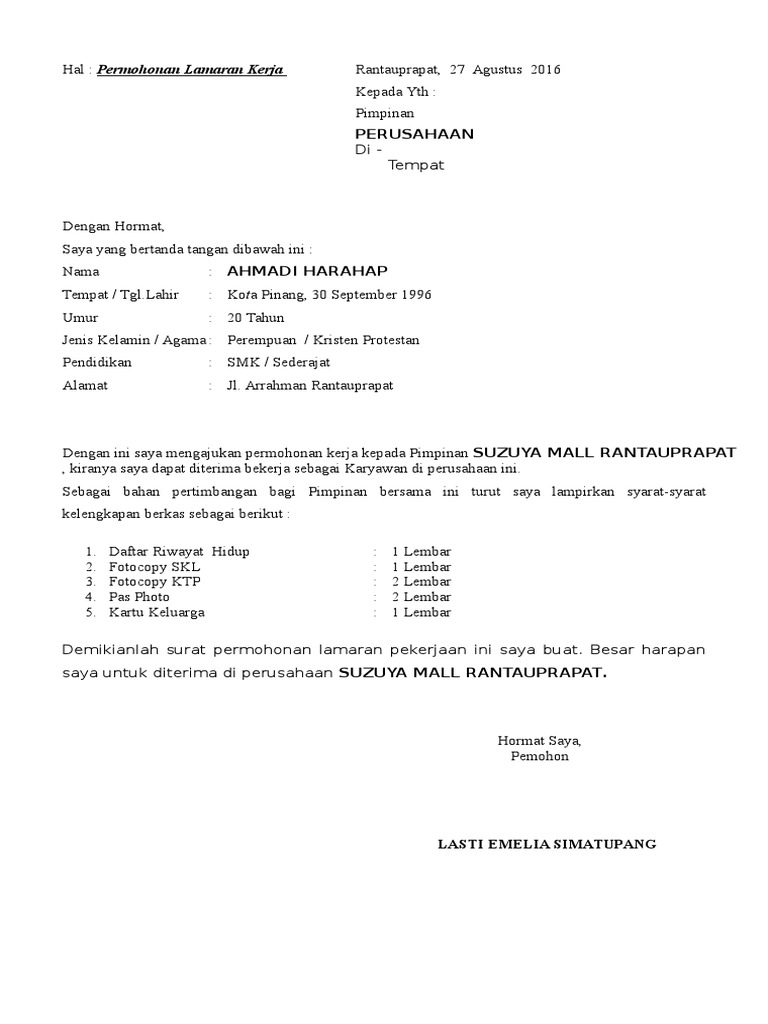 Contoh Surat Penting Contoh Surat Lamaran Kerja Di Mall