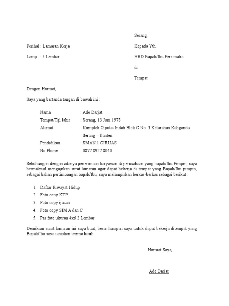 Contoh surat lamaran kerja di pabrik memiliki sebuah pekerjaan adalah keinginan semua orang. Karena pekerjaan yang dilakukan nantinya terbilang mudah banyaklah orang yang mengadu nasib ke perusahaan. Contoh surat lamaran kerja pabrik yang baik dan benar pasti sangat berguna ketika kamu tamat dari pendidikan baik itu sma atau universitas yang akan mencari pekerjaan untuk menyambung hidup. Pada contoh surat lamaran kerja kasir di alfamart saya buat dari informasi lowongan kerja yang saya lihat di website loker berikut contoh surat lamaran kerja kasir di alfamart. 7 contoh surat lamaran kerja sebagai customer service. Contoh surat lamaran kerja di pabrik dalam pembuatan surat lamaran bekerja tidak boleh mengarang sendiri ataupun membuat buat kalimat sendiri.