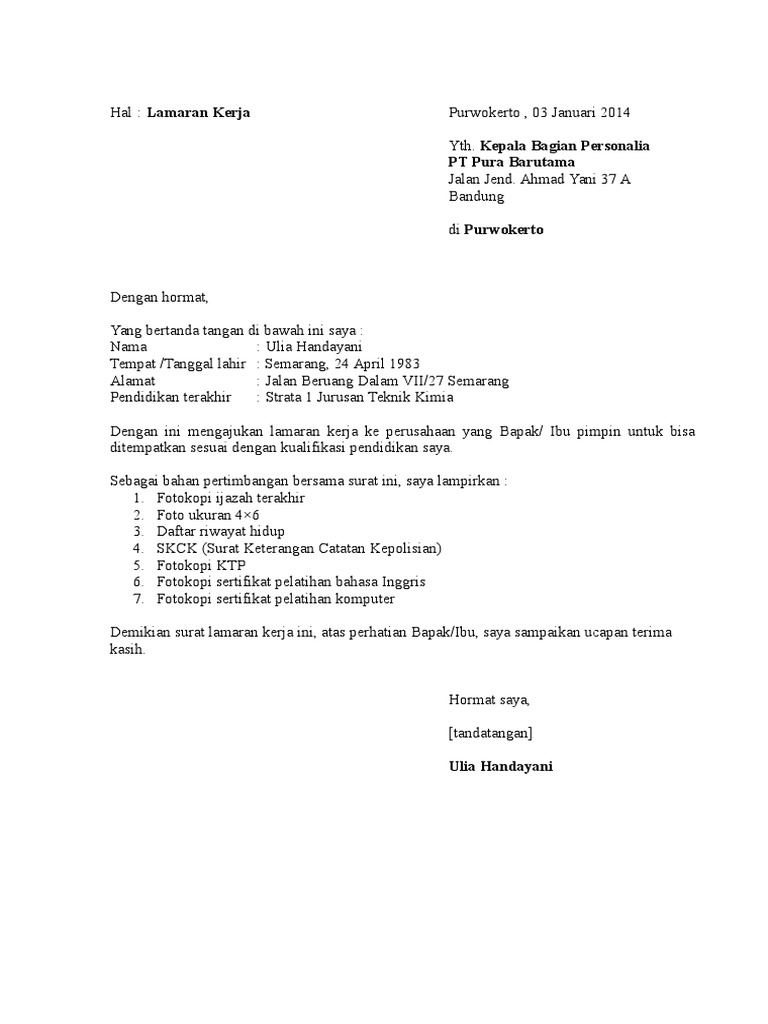Contoh surat lamaran pekerjaan berdasarkan inisiatif sendiri hal. Surat lamaran kerja yang bermodel seperti ini biasanya adalah hasil dari kreativitas seseorang yang sangat menginginkan sebuah pekerjaan.