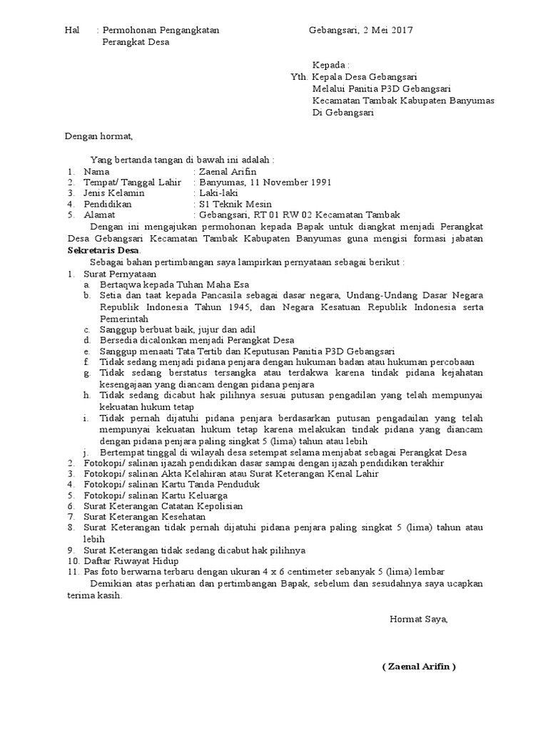 Contoh surat permohonan lamaran perangkat desa zona surat contoh surat peringatan tidak masuk kerja portal ilmucom contoh surat peringatan atau teguran gultom law consultants. Contoh surat lamaran perangkat desa 2020 dalam pengisianseleksi penjaringan dan penyaringan jabatan perangkat desa salah satu syarat administrasi yang harus dilengkapi oleh bakal calon perangkat desa adalah surat lamaransurat permohonan. Berikut ini contoh contoh surat lamaran kerjanya adalah sebagai berikut. Contoh format surat permohonan pencalonan perangkat desa terbaru berikut ini merupakan sebuah form surat permohonan contoh surat permohonan pencalonan perangkat desa terbaru sesuai dengan undang undang yang berlakuperangkat desa merupakan seorang pejabat pemerintahan desa yang mana pada akhir akhir ini jabatan ini banyak sekali orang yang memburu selain dana desa yang semakin lama. Contoh surat lamaran ini dirangkum dari berbagai sumber yang ada dan juga dipercaya. Contoh surat lengkap surat ijin surat lamaran kerja perintah resmi permohonan keterangan undangan dinas niaga jalan dukungan pengantar.