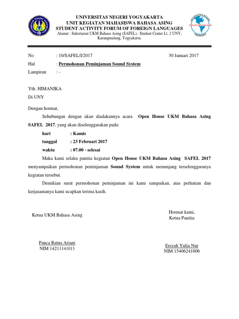 Contoh surat peminjaman sound system. Sebelum menulis tentang contoh surat permohonan izi peminjaman sarana prasana sekolah saya ucapkan selamat tahun baru 2017. Demikianlah surat permohonan ini kami sampaikan. Seperti pada kesempatan sebelum sebelumnya penulis kembali dengan membagikan artikel terbaru yang mana pada kali ini artikel mengenai tentang contoh surat peminjaman barang selain contoh surat peminjaman barang penulis juga akan membegikan definisi dari pembahasan kita kali ini. Pekan olahraga biasanya diadakan satu tahun sekali. Contoh surat peminjaman barang lengkap berbagai kebutuhan berita bawean. Malang 16 desember 2019 kepada yth.