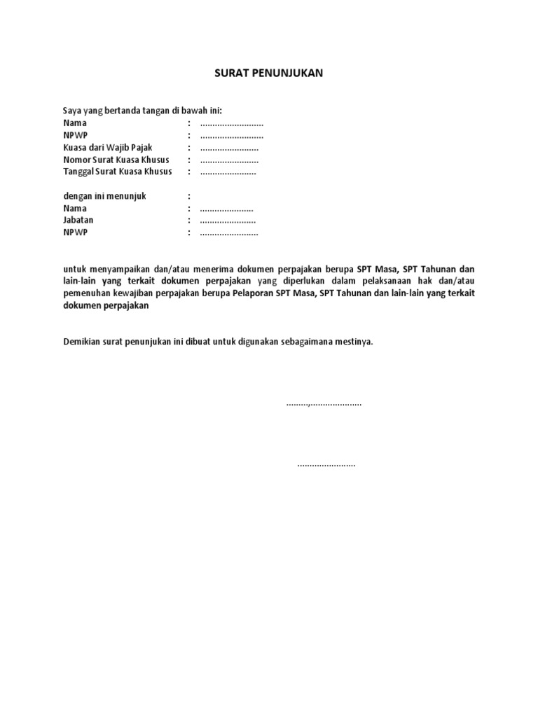 Contoh surat penunjukan lapor pajak. Selain contoh surat di atas ada pula contoh surat kuasa pajak lain dengan format yang serupa seperti di bawah ini. Kuasa dari wajib pajak. Your center of excellence in taxation ortax pajak peraturan treaty kurs berita tax learning contoh surat kuasa lapor spt tahunan atau masa ortax your center of excellence in taxation login new member konfirmasi. Contoh surat penunjukan pelaporan pajak sebelum anda mengetahui contoh surat penunjukan pelaporan pajak. Alangkah baiknya anda untuk tahu terlebih dahulu fungsi dari surat penunjukan pelaporan pajak. Tanggal surat kuasa khusus.