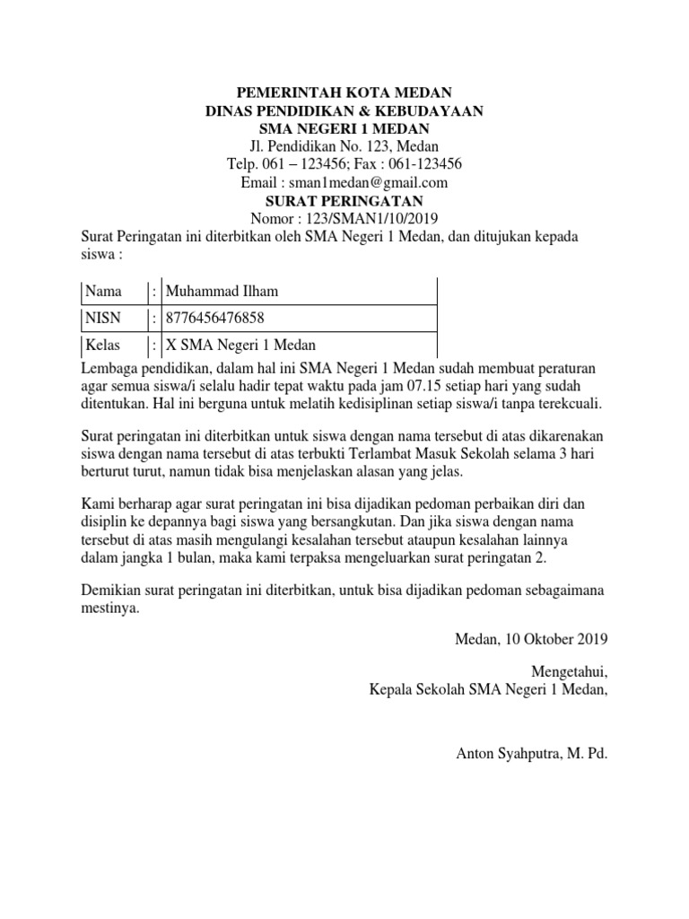 Dinas pendidikan kotamadya medan sma negeri 1 medan jl. 15 contoh surat peringatan 1 untuk siswa pns dan karyawan setiap perusahaan instansi pemerintahan lembaga organisasi dan berbagai kelompok lainnya tentu saja memiliki peraturan masing masing.