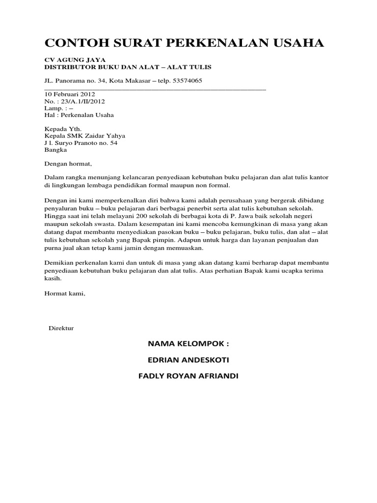 Contoh surat perkenalan usaha. Sama seperti beberapa contoh surat niaga lainnya surat ini memiliki manfaat yang tidak kalah penting. 15 contoh surat bisnis untuk berbagai keperluan seiring dengan dengan perkembangan zaman dan kecanggihan teknologi sekarang ini maka penggunaan surat sebagai media komunikasi juga sudah semakin menurun. Berikut contoh suratnya. 15 contoh surat perkenalan produk dan jasa perusahaan seiring dengan kemajuan zaman dan kecanggihan teknologi sekarang ini pihak perusahaan memang sangat mudah untuk memperkenalkan perusahaan mereka maupun produk yang mereka miliki. Semoga sobat semua dalam keadaan yang terbaik ya. Namun kendati demikian anda tetap masih bisa menggunakan surat dalam bahasa inggris untuk surat resmi maupun surat pribadi yang ingin anda tulis.