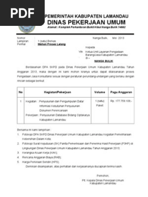 Surat permohonan lelang ke ulp by abuaisyah13. Contoh surat lelang adalah penjualan barang yang terbuka untuk umum dengan penawaran harga secara tertulis danatau lisan yang semakin meningkat atau menurun untuk mencapai harga tertinggi yang didahului dengan pengumuman lelang. Contoh surat permohonan lelang ke kpknl surat 20 i salinan i sop pelayanan lelang monitoring layanan unggulan kpknl singaraja penatausahaan bmn bmnmalut lelang wikipedia bahasa indonesia ensiklopedia bebas puluhan mobil mewah dilelang dalam satu paket kompas com. Contoh surat permintaan dari ppk kepada pokja ulppejabat pengadaan untuk from magister m 15 at gadjah mada university. Admin blog kumpulan surat penting 2019 juga mengumpulkan gambar gambar lainnya terkait contoh surat ppk ke pejabat pengadaan dibawah ini. Dinas pekerjaan umum alamat.