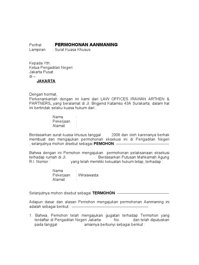 Contoh surat permohonan pengadilan negeri. Berikut dokumen nya silahkan download. Sebagaimana halnya gugatan permohonan juga mempunyai beberapa syarat formil yang didalamnya harus memenuhi. Di kabupaten sleman dengan hormat perkenankan kami yang. Dalam rangka pencegahan corona viruscovid19 dan pembatasan sosial berskala besar. Contoh surat penetapan dari pengadilan menyambung sebelumnya tentang surat kuasa yang membutuhkan surat penetapan dari pengadilan berikut bisa anda download suratnya. Dengan ini saya mengajukan permohonan kepada bapak kepala dinas sosial kabupaten bireuen agar sudi kiranya membuat surat keterangan kartu indonesia pintar kip atas nama yang tersebut diatas karena saya tergolong siswa kurang mampu untuk dapat dipergunakan pada jenjang studi di perguruan tinggal unsyiah dengan harapan saya bisa mendapatkan kip kuliah.