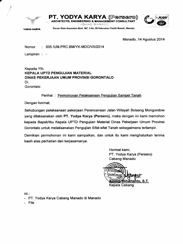 Laboratorium pengujian bbpp batu bbpp batu contoh surat permohonan uji laboratorium surat 31. Admin blog kumpulan surat penting juga mengumpulkan gambar gambar lainnya terkait contoh surat permohonan uji lab material dibawah ini. Contoh surat permohonan yang umum dan sering kali kita temui misalnya surat permohonan bantuan dana kerjasama rekomendasi penggunaan tempat. Permohonan uji laboratorium mutu agregat. Jakarta 29 agustus 2016. 15 contoh surat pengajuan permohonan izin bantuan dan kerjasama seiring dengan perkembangan zaman dan kemajuan teknologi yang semakin canggih penggunaan surat sebagai media komunikasi pun memang semakin menipis.