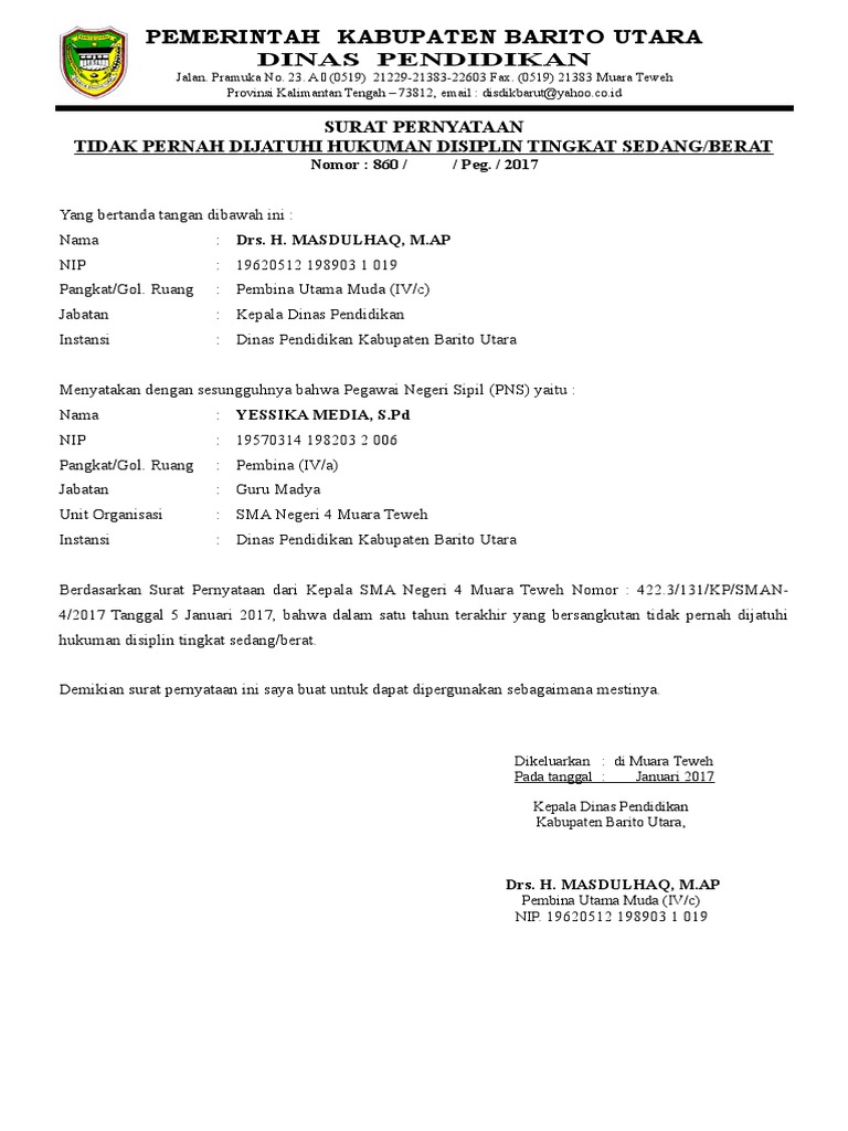 Sebenarnya contoh format surat pernyataan tidak pernah dijatuhi hukumun disiplin pns itu tersedia dalam lampiran keputusan kepala badan kepegawaian nomor 12 tahun 2002 pada tanggal 17 juni 2002. Contoh surat pernyataan tidak pernah dijatuhi hukuman pidana berdasarkan putusan pengadilan ditulis oleh ahyar 4122013. Selain contoh surat diatas ada juga yang harus melampirkan surat kesediaan ditugaskan diseluruh skpd. Surat pernyataan tidak sedang menjalani hukuman pidana penjara surat pernyataan tidak pernah dijatuhi pidana penjara berdasarkan putusan pengadilan surat pernyataan tidak pernah melakukan tindak pidana contoh surat pernyataan tidak pernah dihukum penjara untuk cpns surat keterangan tidak pernah terlibat dalam kasus hukum yang di tandatangani di atas materai 6000 surat pernyataan tidak. Untuk mendownload contoh format surat pernyataan tidak pernah dijatuhi hukuman disiplin tingkat sedang berat klik disini doc. Surat pernyataan tidak pernah dijatuhi hukuman disiplin 1.
