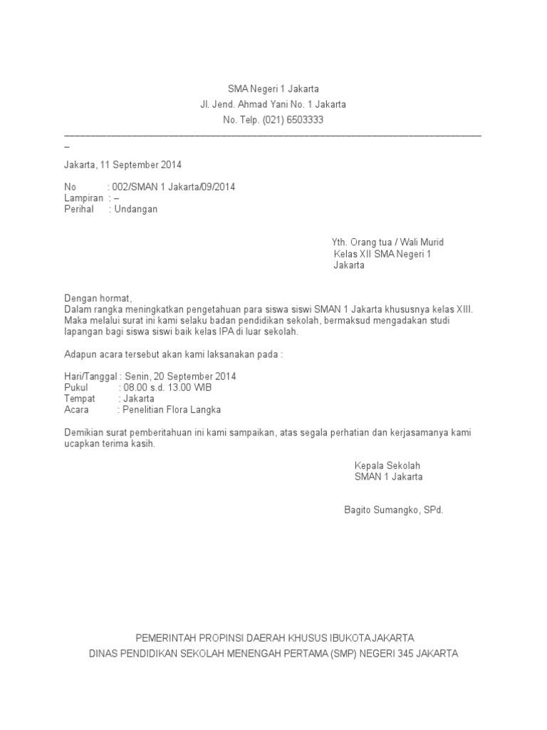Contoh surat resmi sekolah smp. Misalnya surat resmi dari kepala sekolah surat resmi dari dinas pendidikan surat resmi osis surat undangan resmi untuk orang tua siswa. Mulai dari contoh surat dinas sekolah contoh surat dinas resmi contoh surat dinas undangan contoh surat dinas pemerintah contoh surat dinas pendidikan contoh surat dinas osis contoh surat dinas perusahaan contoh surat dinas permohonan dll. Diantara banyak surat yang sering masuk maupun keluar adalah surat pemberitahuan. Surat resmi tersebut berfungsi untuk memberikan informasi kepada pihak lain atau instansi yang terkait. 15 contoh surat dinas sekolah yang baik dan benar seiring dengan perkembangan zaman dan kecanggihan teknologi sekarang ini penggunaan surat juga sudah semakin menurun terlebih di kalangan pribadi maupun perseorangan. Surat dinas adalah surat yang dibuat oleh instansi resmi atau dinas yang berguna untuk berbagai kepentingan tertentu.