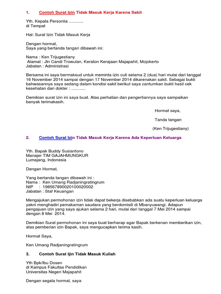Di universitas teknologi yogyakarta. Nah bagi para pelajar dan mahasiswa yang masih kebingungan mengenai bagaimana format dan cara membuat. Contoh surat izin tidak masuk kuliah karena sakit dan kepentingan keluarga contoh surat izin tidak masuk kuliah sebenarnya tidak jauh berbeda dengan surat izin lainnya sebagaimana kemarin telah saya sampaikan tentang contoh surat izin tidak masuk sekolah kali ini saya ingin berbagi informasi tentang cara membuat surat izin tidak masuk kuliah yang baik dan benar. Surat izin adalah salah satu surat yang berisi tentang keterangan bahwa seorang yang membuat surat tersebut untuk meminta izin pada sebuah alasan melakukan sesuatu di luar tugas wajib yang dilakukan. Contoh surat izin tidak masuk kuliah terima kasih saya ucapkan kepada para pembaca yang sudah mau meluangkan waktunya untuk mengunjungi situs ini. Contoh surat izin sakit ini bisa kamu gunakan untuk keperluan tidak masuk sekolah kuliah atau pun kerja.