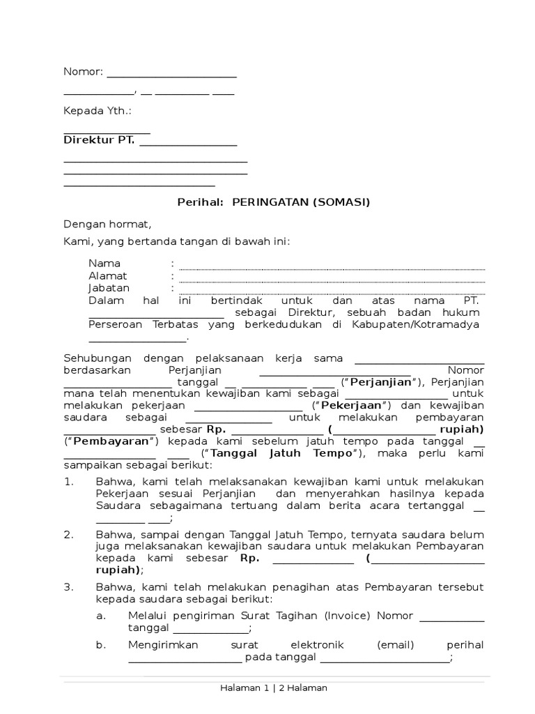 Surat somasi dapat menjadi sebuah indikator keberhasilan dalam penyelesaian suatu perkara seperti hutang piutang sengketa kepemilikan pencemaran nama baik ataupun perkara perkara lainnya. Jika kita telah melewati tanggal jatuh tempo pembayaran maka kita akan menerima berupa surat penagihan pembayaran. Berikut ini contoh surat penagihan pembayaran yang baik dan benar. Kesimpulannya surat somasi itu adalah upaya teguran secara hukum kepada seseorang untuk diberikan kesempatan melakukan upaya perbaikan dan. Misalnya perihal hutang piutang perjanjian yang tidak ditepati maupun penghinaan juga bisa mengajukan somasi. Download contoh surat penagihan hutang pemberitahuan tunggakan perusahaan password.