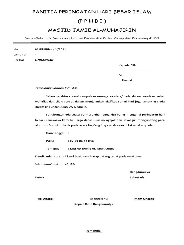 02 panpel maulid ii 2014 perbaungan januari 2014. Berbagi ke twitter berbagi ke facebook bagikan ke pinterest. Nama serta alamat pihak yang dituju di bagian ini cantumkan nama dan alamat pihak yang akan kamu undang dalam kegiatan secara lengkap dan jelas. Kops surat bagian ini merupakan bagian terpenting dalam surat resmi karena pada bagian inilah menunjukan instansi surat undangan berasal. Bahkan di beberapa kota maulid mendapat perhatian khusus dan menjadi acara besar besaran misalnya grebek maulid yang diadakan di yogyakarta. Kata maulid itu sendiri berasal dari bahasa arab yang artinya hari.