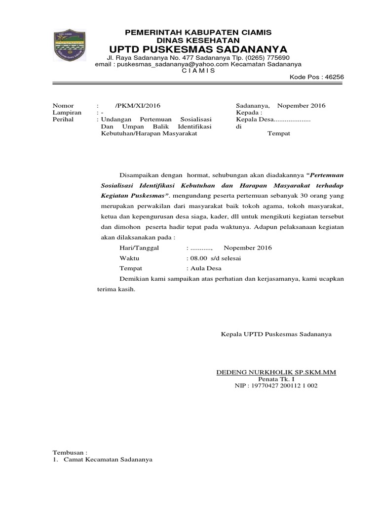 Surat keputunsan merupakan salah satu surat resmi yang dikeluarkan oleh suatu instansi kepada anggota dari instansi tersebut. Contoh surat undangan sosialisasi resmi kepada kepala sekolah se kecamatan surat undangan yang bersifat resmi umumnya digunakan oleh sebuah instansi atau oraganisasi. Contoh surat undangan rapat anda tentu pernah menghadiri sebuah acara rapat entah rapat rt rapat karang taruna rapat acara kepanitiaan rapat dengan klien di perusahaan rapat direksi dan lain lain. 66 v2011 patikraja 5 mei 2011. Surat yang bersifat resmi terdiri atas 2 jenis yaitu surat undangan individu dan surat undangan instansi. Dari 3 contoh surat undangan resmi yang benar tersebut terlihat jelas bahwa setiap surat undangan mencantumkan format surat dengan runtut dan lengkap.