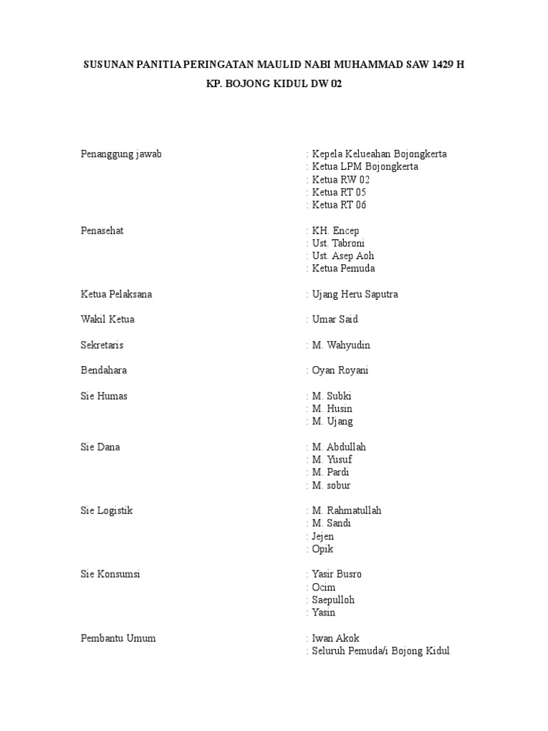 Contoh susunan panitia pernikahan dalam suatu kegiatan tentu ada kepanitiaan bukan nah terbentuknya kepanitiaan ini dibuat oleh pengada acara dan disetujui oleh para anggota panitia tak terkecuali acara pernikahan acara pernikahan tentu membutuhkan susunan panitia dengan harapan acara akan berjalan sesuai keinginan jadi artikel kali ini akan membahas bagian dari pengertian susunan. Proposal dibuat untuk mendapatkan persetujuan pihak lain bisa juga dibuat untuk permohonan dana bantuan yang nantinya akan terdapat kerja sama antara pihak yang mengajukan proposal dan pihak yang memberi bantuan.