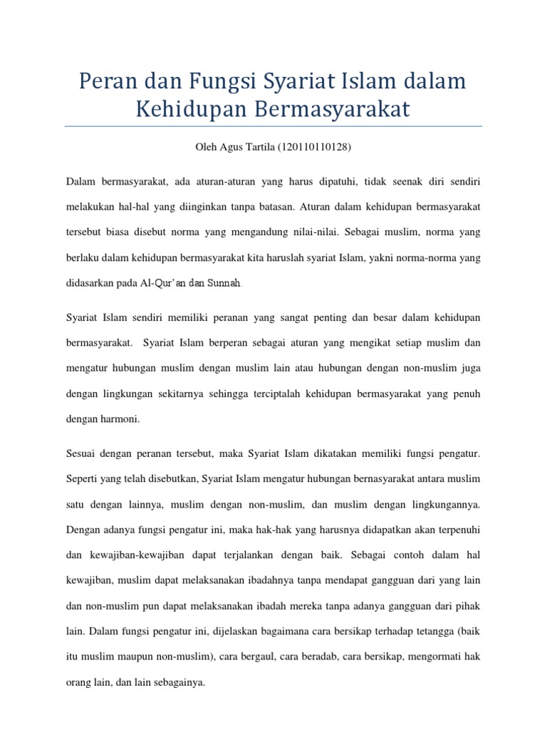 Contoh syariat islam dalam kehidupan sehari hari. Dengan ini kita semua mengerti bahwa islam mencakup keseluruhan termasuk dalam kehidupan sehari hari segala perbuatan kita harus bersandar pada hukum hukum islam baik itu dari hubungan kita dengan allah habluminallah dengan diri sendiri maupun orang lain habluminannas. Homepage contoh syariat islam dalam kehidupan sehari hari. Allah telah menurunkan agama islam secara lengkap dan sempurna kepada nabi muhammad saw. Tak bisa dipungkiri bahwa zaman yang katanya modern ini pastinya akan mengusung bahkan menyeret manusia untuk mengikutinya. Syariat islam telah dibuat dengan sebaik baiknya sehingga tidak mungkin menyusahkan atau menghambat umatnya untuk melakukan aktivitas sehari hari. Syariat islam dalam kehidupan sehari hari.