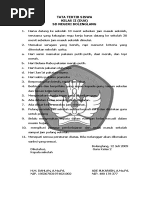 Bukan hanya untuk siswa di lingkungan sekolah tata tertib berlaku juga untuk kepala sekolah guru atau perangkat sekolah lainnya. Peraturan sekolah yang berupa tata tertib sekolah merupakan kumpulan aturanaturan yang dibuat secara tertulis dan mengikat di lingkungan sekolah. Kalau sekolah tidak memiliki tata tertib atau peraturan yang ada nantinya para pelajar menjadi sulit untuk di atur karena mereka tidak memiliki peraturan yang harus di taati. Keputusan kepala sma negeri 1 jogonalan nomor. Oleh karena itu setiap sekolah baik itu sekolah dasar sekolah menengah atas atau sekolah menengah pertama pasti memiliki tata tertib sekolah yang juga menjadi salah satu standar pengelolaan pendidikan. Dari pengertian di atas dapat dipahami bahwa tata tertib sekolah merupakan satu kesatuan yang tidak dapat dipisahkan satu dengan yang lain sebagai aturan yang berlaku di sekolah agar proses pendidikan dapat berlangsung dengan efektif dan efisien.