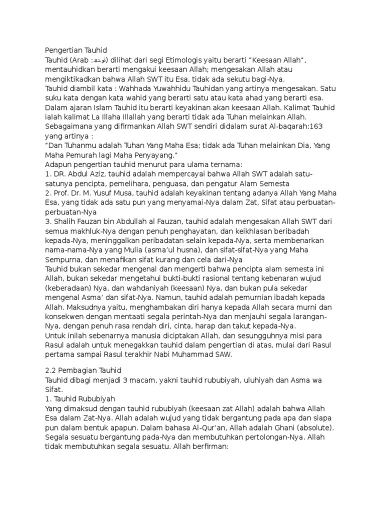Ilmu Tauhid Arti Tauhid Rububiyah Uluhiyah Amp Asma Wa Shifat