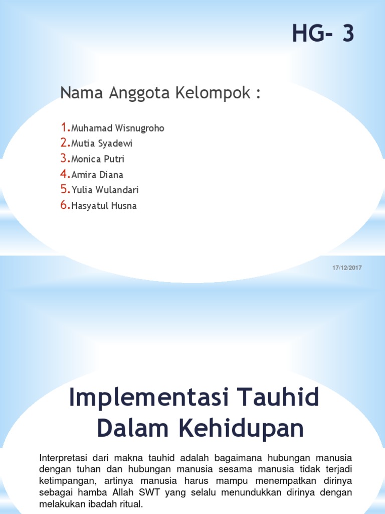 Rumusan ini tercermin dalam kalimat syahadat yaitu laailaaha. Oleh dosenpendidikan diposting pada 12012020. Kemudian dalam masalah akidah ini tauhid merupakan pembahasan utamanya. Penerapan tauhid dalam kehidupan. Tawakal dan bersabar dalam menghadapi musibah. Menurut istilah tauhid berarti menyakini bahwa allah swt itu esa dan tidak ada sekutu bagi nya.