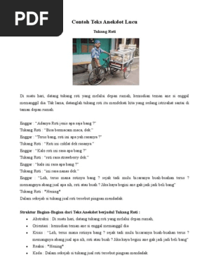 Jika membahas tentang anekdot tentu akan kurang rasanya jika anda tidak memahami ciri ciri struktur dan kaidah dari anekdot itu sendiri. Bagus terbukti bersalah mencuri sepasang sandal di masjid. Yang bisa jadi menggambarkan kejadian sebenarnya. Ada banyak contoh teks. Poinnya teks anekdot amat berhubungan dengan yang namanya lucu serta sindiran. Contoh teks anekdot singkat apa sih pengertian teks anekdot.