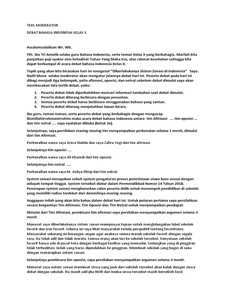 Artikel tentang teks debat untuk pembahasan kali ini kami akan memberikan ulasan mengenai teks debat yang dimana dalam hal ini meliputi pengertian tabel klasifikasi ciri dan gambar nah agar lebih. Kumpulan contoh percakapan bahasa indonesia singkat berikut ini mungkin bisa jadi referensi untuk kalian yang mendapat tugas untuk membuat percakapan bahasa indonesia antara dua orang. Posting pada bahasa indonesia ditag apakah yang ditekankan pada analisis debat bentuk bentuk debat contoh debat singkat tentang kenakalan remaja contoh debat tentang kebersihan lingkungan contoh dialog debat singkat contoh judul debat contoh moderator debat singkat contoh mosi debat singkat contoh pembukaan debat contoh percakapan. Menurut kbbi kamus besar bahasa indonesia12 2. Posting pada bahasa indonesia sma smp umum ditag apa tujuan dari perlombaan debat kompetitif apakah isi debat apakah yang ditekankan pada analisis debat bagaimana cara berdebat dengan benar bentuk bentuk debat contoh debat bahasa indonesia contoh debat dan mosinya contoh debat pro dan kontra bahasa indonesia contoh debat singkat tentang kenakalan remaja contoh debat tentang. 8 contoh teks debat dalam bahasa inggris terbaik.