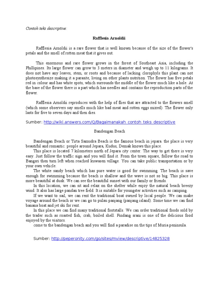 It is located in between bondowoso and banyuwangi. Jember is a regency in east java. Wakatobi identification wakatobi is the name of an archipelago and regency in sulawesi tenggara indonesia. Lalu apa itu teks deskripsi. Descriptive text adalah salah satu materi pembelajaran basaha inggris tingkat smasmk maupun smp yang akan kita bahas kali ini adapun disini kita akan membahas tentang 7 contoh example descriptive text singkatpendek tentang tempat orang hewan beserta arti atau terjemahannya dan generic structurenya. Contoh teks deskripsi sebelum kita membahas contoh dari teks deskripsi ada baiknya kita mengetahui terlebih dahulu pengertian teks deskripsi.