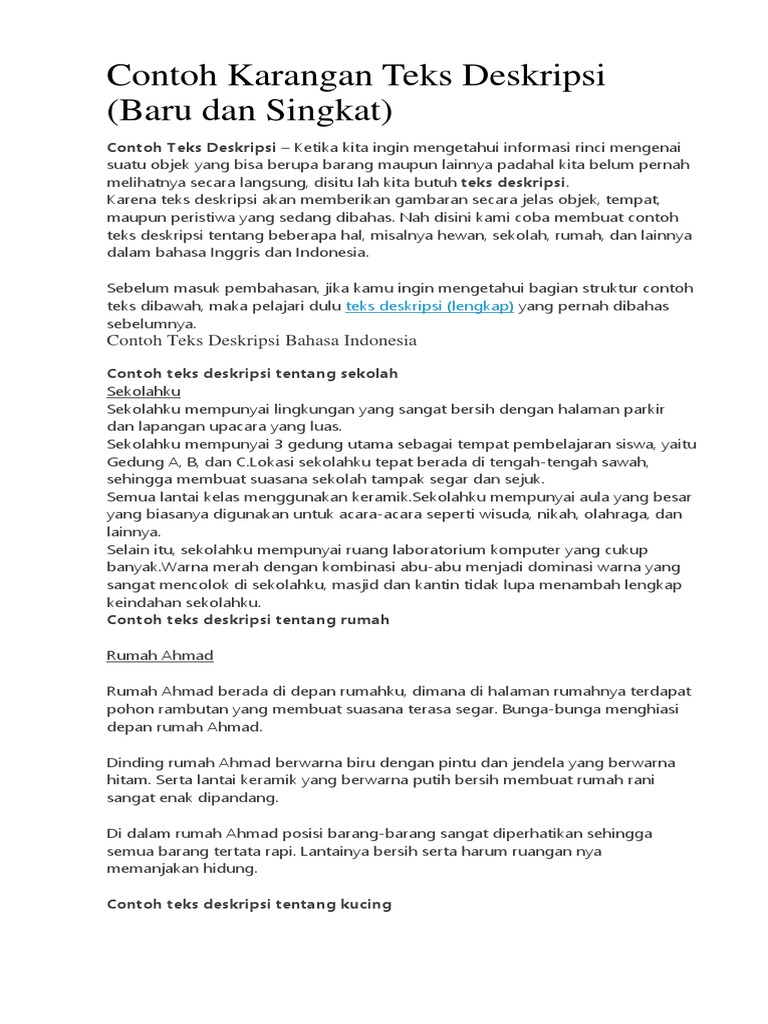 Mulai dari contoh teks deskripsi tentang sekolah contoh teks deskripsi tentang hewan contoh teks deskripsi beserta strukturnya contoh teks deskripsi tentang benda contoh teks deskripsi bahasa jawa contoh teks deskripsi tentang tempat wisata dll.