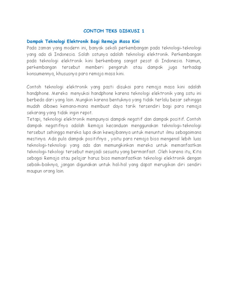 Beberapa contoh teks diskusi yang akan kami berikan yaitu tentang teknologi pendidikan kesehatan lingkungan narkoba dan internet beserta strukturnya. Teks diskusi tentang pendidikan.