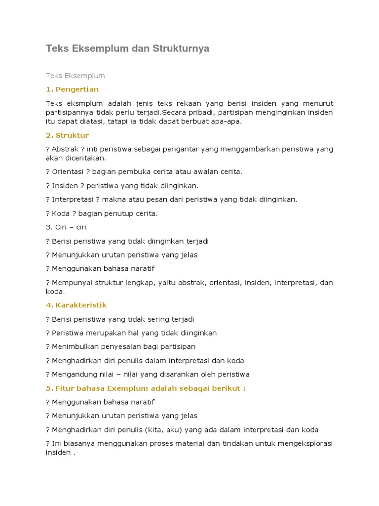 Pengertian Teks Eksemplum Struktur Ciri Unsur Dan Contohnya