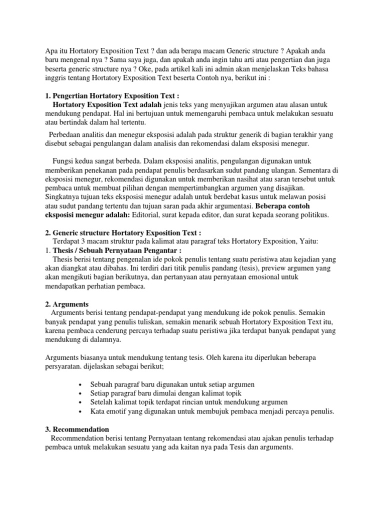 Maka kekeuatan tulisn teks dengan jenis seperti ini akan terletak pada argument yang akan diberikan. English admin analytical exposition adalah jenis text yang berusaha menyakinkan pembacanya. Pada masa itu remaja sedang mencari identitas dirinya. Contoh teks eksposisi hortatorik dan analitik teks eksposisi hortatorik. Contoh teks eksposisi analisis beserta strukturnya teks eksposisi analisis merupakan salah satu jenis karangan eksposisi.